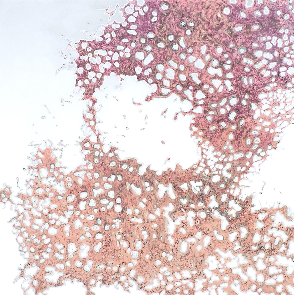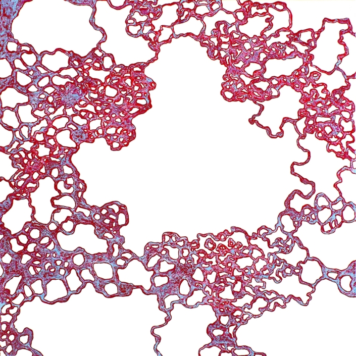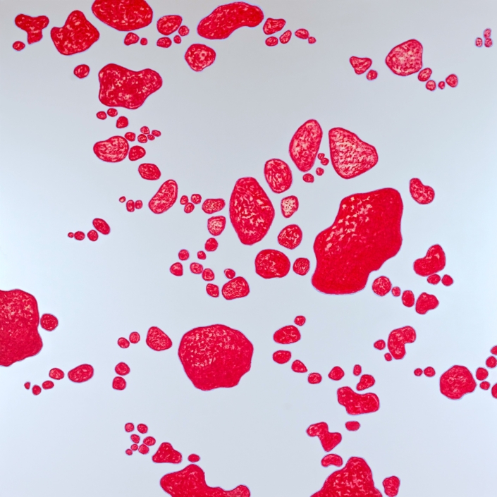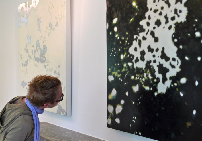 Si Axelle Snakkers cite Beuys dont le travail exprime tant la sensation du vivant, elle se sent proche de la peinture américaine, celle de Brice Marden, en particulier. Le geste crée la pensée : « Commencer une pièce, c’est comme se jeter dans le vide », dit-elle « se mettre dans un état de réceptivité qui laisse place au lyrisme, à la plasticité, à l’émergence des possibles ». / Françoise Mamie